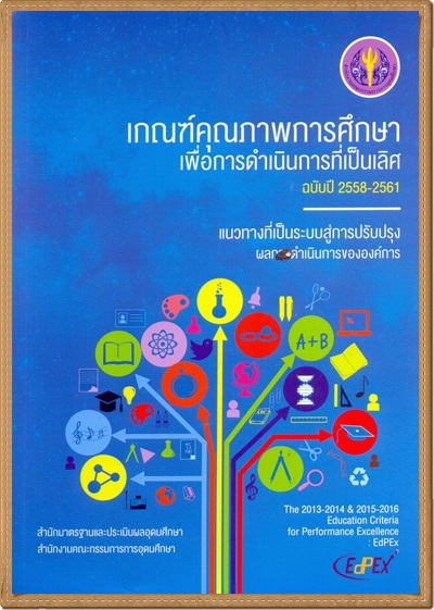 เกณฑ์คุณภาพการศึกษาเพื่อการดำเนินการที่เป็นเลิศ 2558-2561 = แนวทางที่เป็นระบบสู่การปรับปรุงผลการดำเนินการขององค์กร / จัดทำโดย: คณะอนุกรรมการทำงานพัฒนาเกณฑ์คุณภาพการศึกษาสู่ความเป็นเลิศ